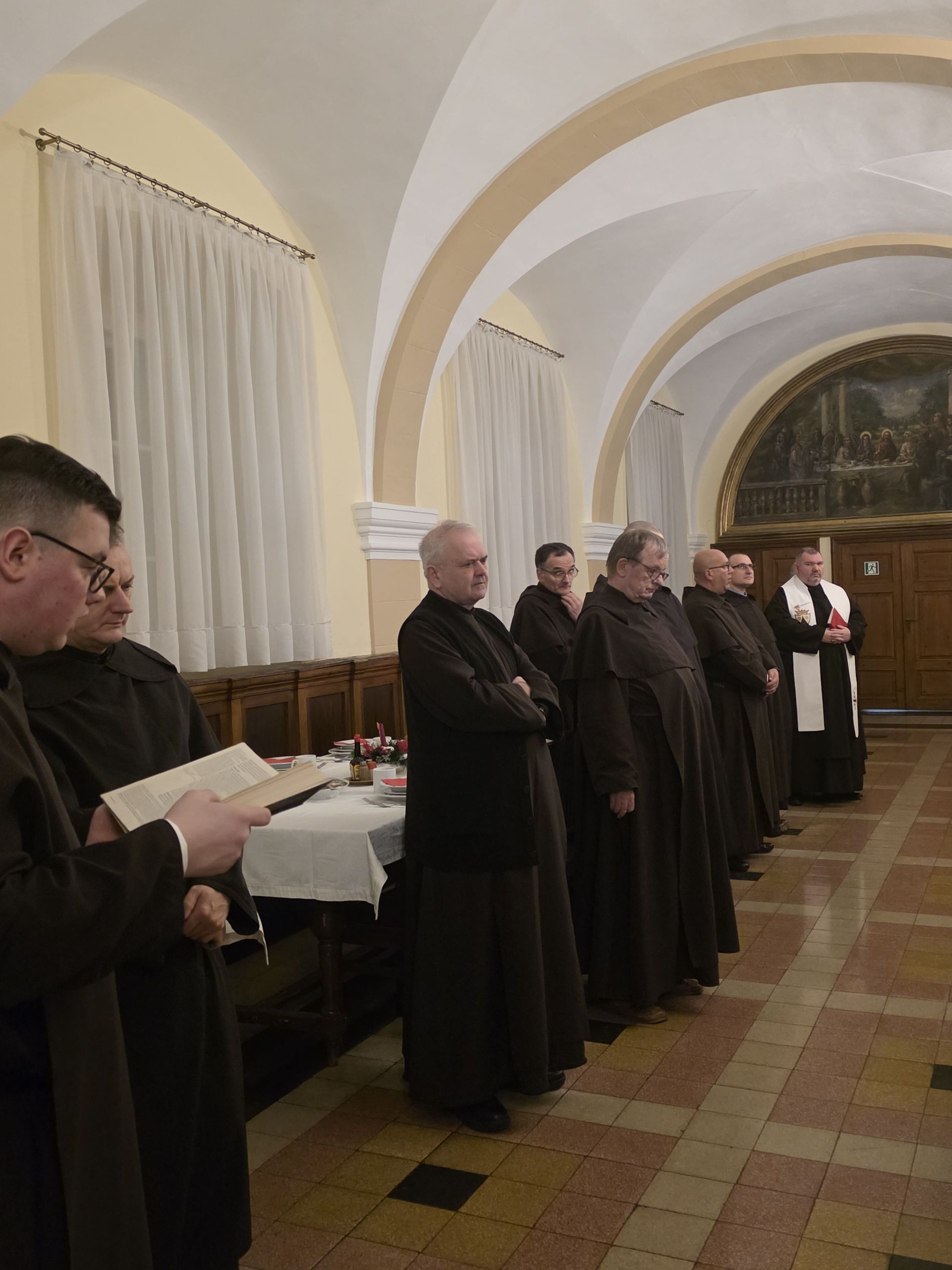 O godzinie 17:45 w klasztorze rozpoczęły się uroczyste nieszpory, będące bezpośrednim wprowadzeniem w świętowanie Bożego Narodzenia. Modlitwa Liturgii Godzin zgromadziła współbraci, którzy dziękowali Bogu za dar Wcielenia oraz za mijający rok życia i posługi.