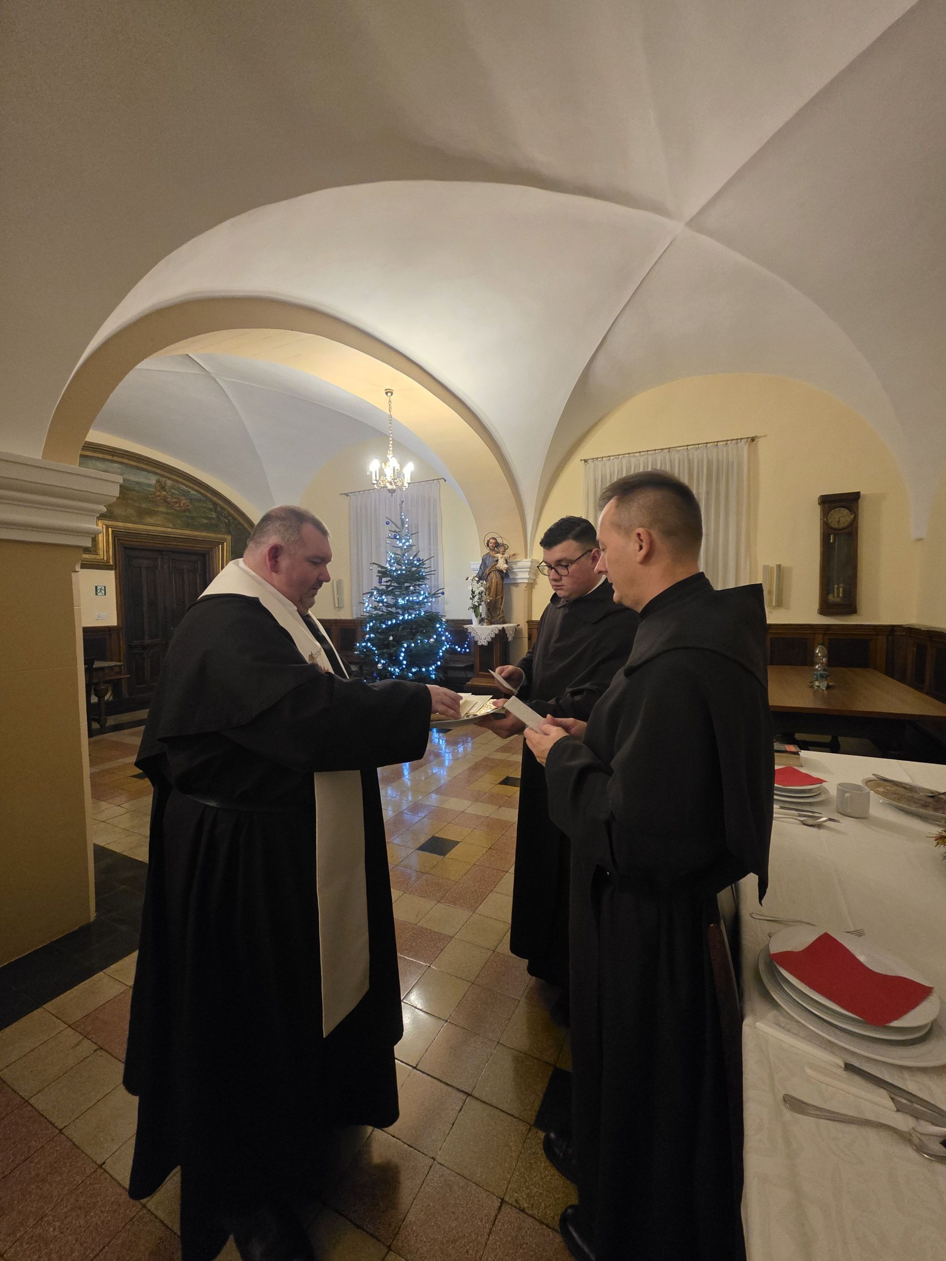 Po zakończonych nieszporach wspólnota zebrała się na tradycyjnej wieczerzy wigilijnej. Był to czas dzielenia się opłatkiem, składania serdecznych życzeń oraz umacniania braterskich więzi w duchu radości, pokoju i wzajemnej życzliwości.
